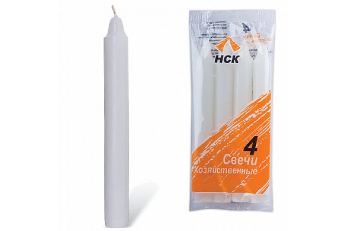 Свечи хозяйственные, КОМПЛЕКТ 4 шт., диаметр 18 мм, высота 170 мм, 590417 используются в быту для освещения помещения. Они удобны в использовании, дают ровный яркий свет.