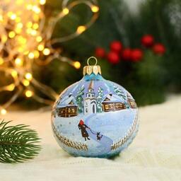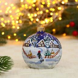 Ёлочный шар d-8 см "Рождество в деревне" ручная роспись