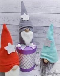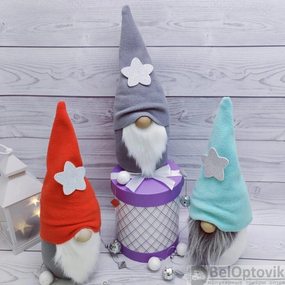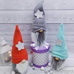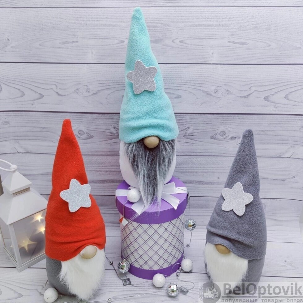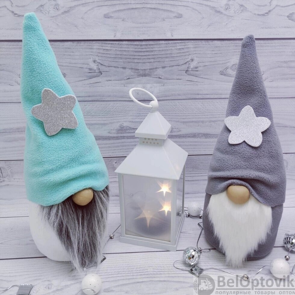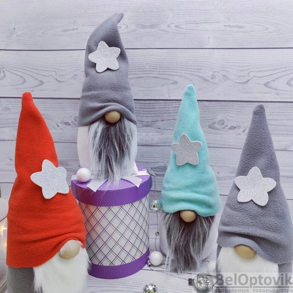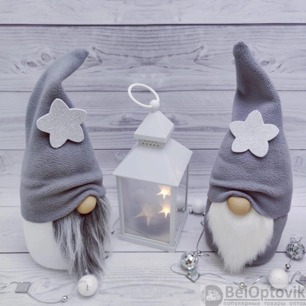 Новогодний Гном большой (37 см). Интерьерное текстильное украшение с душой, ручной работы. Серый с белой