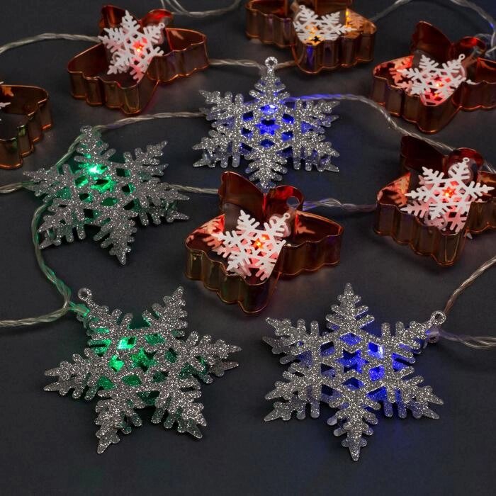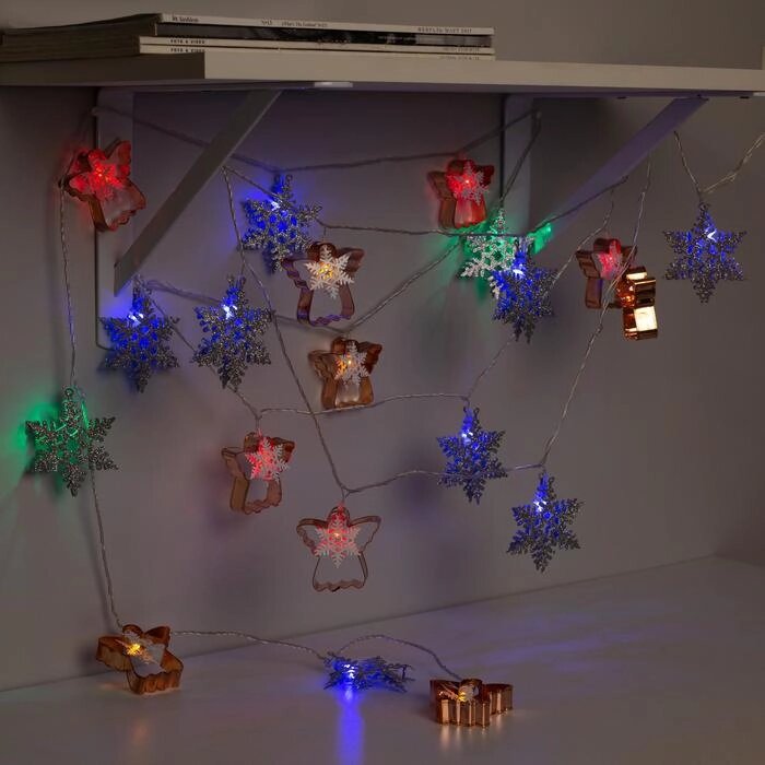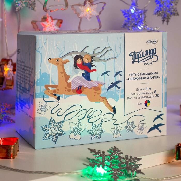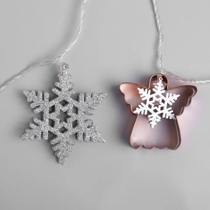 Гирлянда "Нить" 4 м с насадками "Снежинки и ангел", IP20, прозрачная нить, 20 LED, свечение мульти,