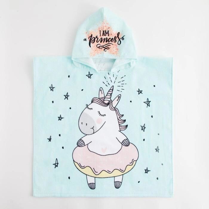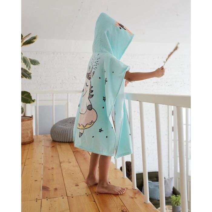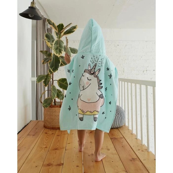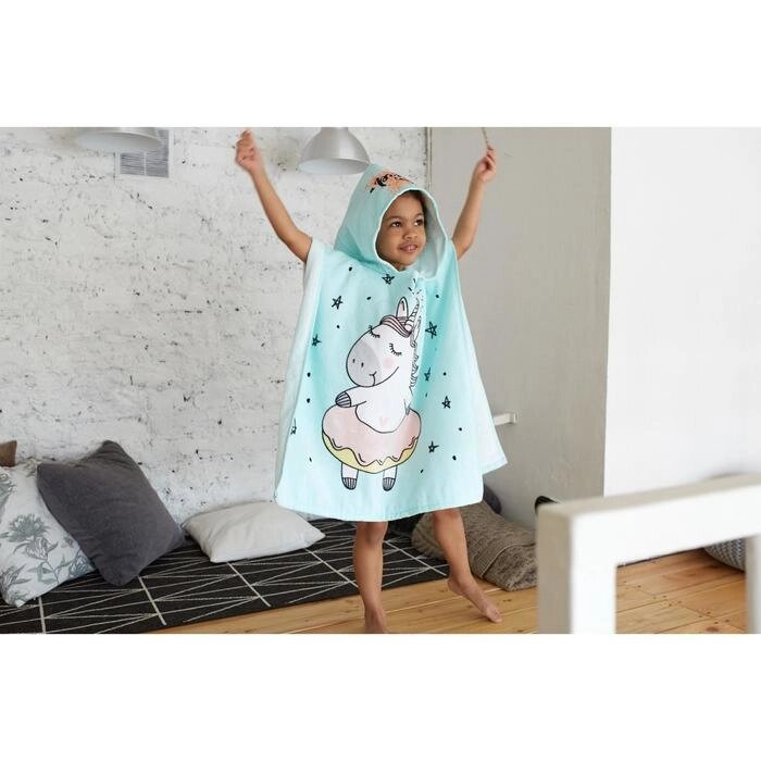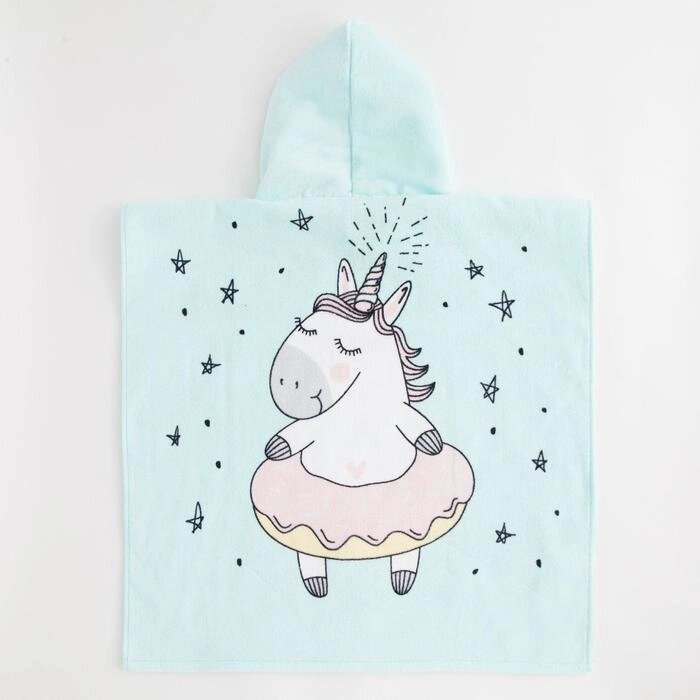 Полотенце-пончо детское махровое Крошка Я "Единорог", 60*120см, 100% хлопок