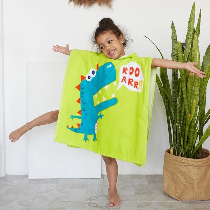 Полотенце-пончо детское махровое Крошка Я "Дино", 60*120см, 100% хлопок
