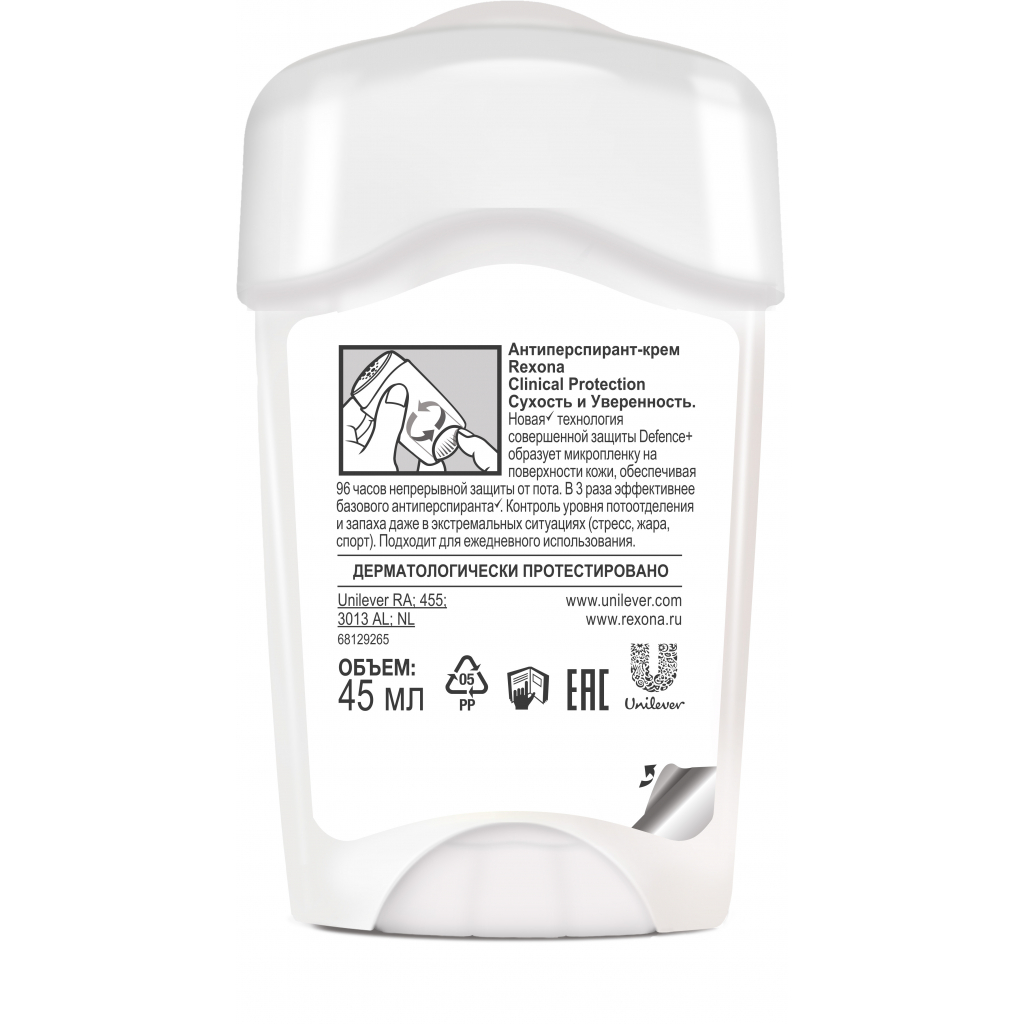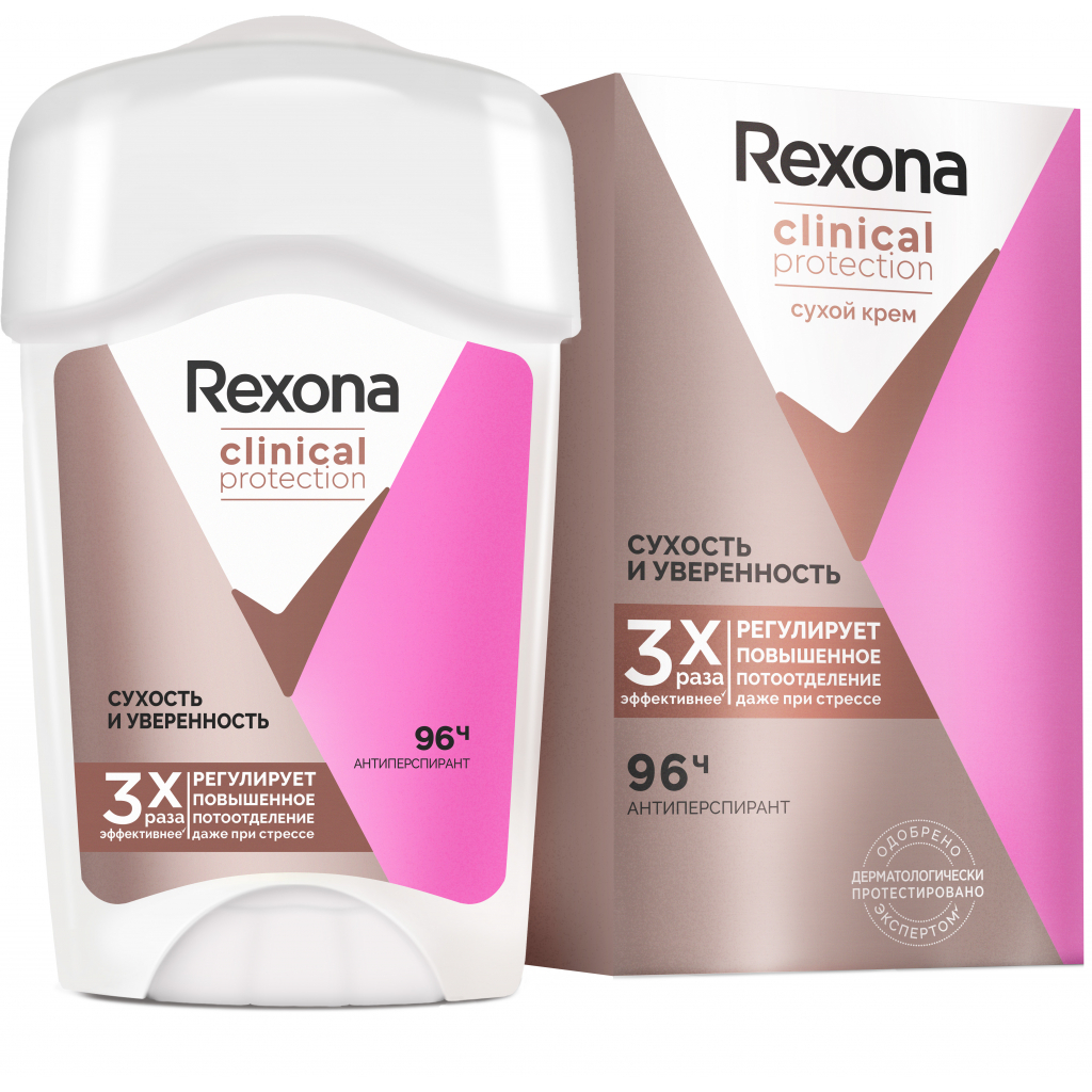 Антиперспірант Rexona Clinical Protection крем Сухість та впевненість 45 мл (4800888214072)