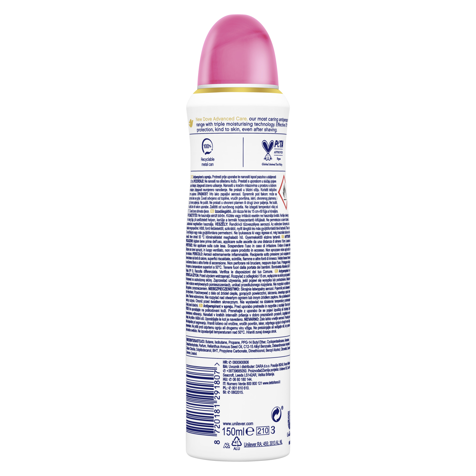 Антиперспірант Dove Пробудження почуттів забезпечує захист від поту на 48 годин і на 1/4 складається з особливого зволожувального крему, який сприяє відновленню шкіри після гоління, роблячи її гладшою та ніжнішою.