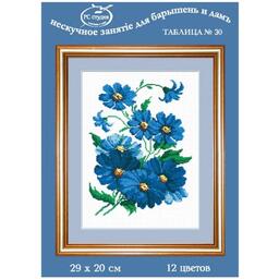 Набор для вышивания РС СТУДИЯ 733 Синие цветочки 29х20 смСекрет отличной вышивки – в продуманной схеме, качественных материалах, терпении и аккуратности мастерицы. Следуйте инструкции, выкладывайте равномерные стежки, и постепенно из-под вашей иглы начнет 'проступать' картина с тщательно прорисованными деталями.Для вышивания используется сетчатая канва Aida 14 из 100% хлопка – это популярный тип канвы, которую выбирают как начинающие, так и опытные мастерицы.Совет: сделайте разметку канвы, ориентируясь по схеме. Разметка поможет вам быстрее закончить вышивку и избежать возможных ошибок.В наборе: канва Aida 14, нитки мулине, цветная схема, инструкция.Количество цветов: 12.