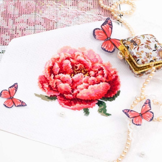 Набор для вышивания ЧУДЕСНАЯ ИГЛА 150-009 Красный пион 11х11см 612776-ars