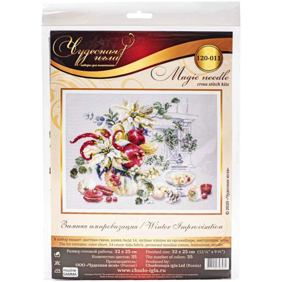 Набор для вышивания ЧУДЕСНАЯ ИГЛА 120-011 Зимняя импровизация 32х25смПри кажущейся простоте техника 'крест' позволяет создавать настоящие картины богатой палитрой, плавными цветовыми переходами. Чтобы получился отличный результат, нужны качественные материалы, продуманная схема и терпение мастерицы.'Чудесная игла' – бренд наборов для вышивания крестом, основанный в 2002 году в Москве. Дизайнеры компании стараются добиться реалистичной цветовой гаммы и точной проработки сюжета. Каждый артикул отшивается несколько раз, чтобы откорректировать возможные ошибки.В наборе: канва Aida-14, мулине хлопок, игла гобеленовая № 24, цветная символьная схема, инструкция.Количество цветов: 35.