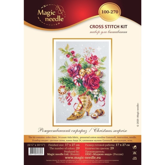 Набор для вышивания ЧУДЕСНАЯ ИГЛА 100-270 Рождественский сюрприз 17х27смПри кажущейся простоте техника 'крест' позволяет создавать настоящие картины богатой палитрой, плавными цветовыми переходами. Чтобы получился отличный результат, нужны качественные материалы, продуманная схема и терпение мастерицы.'Чудесная игла' – бренд наборов для вышивания крестом, основанный в 2002 году в Москве. Дизайнеры компании стараются добиться реалистичной цветовой гаммы и точной проработки сюжета. Каждый артикул отшивается несколько раз, чтобы откорректировать возможные ошибки.В наборе: канва Aida-14 светло-серая, мулине хлопок, игла гобеленовая № 24, цветная символьная схема, инструкция.Количество цветов: 29.
