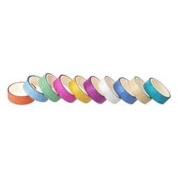 Декоративная клейкая лента выполнена из пропитанной цветной бумаги с блеском, особенность липкого слоя - его можно снять, не повреждая основу композиции.