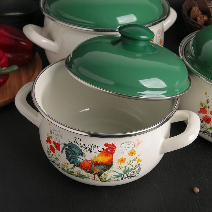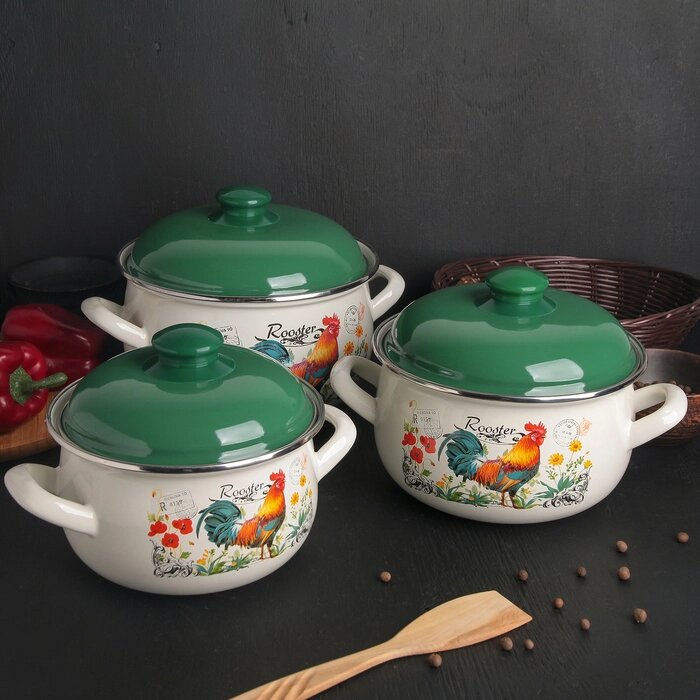 Набор кастрюль «Петушок» 3 предмета: 2,1 л, 3,1 л, 4 л