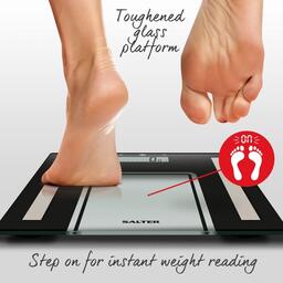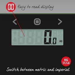- Automatinis įsijungimas atsistojus Jutiklis, kuris automatiškai įjungia svarstyklės ant jų atsistojus. Taip