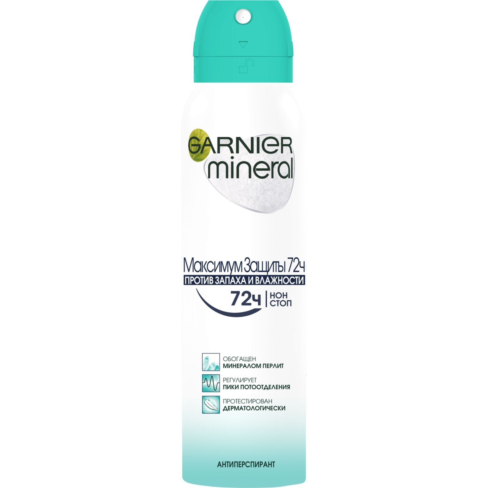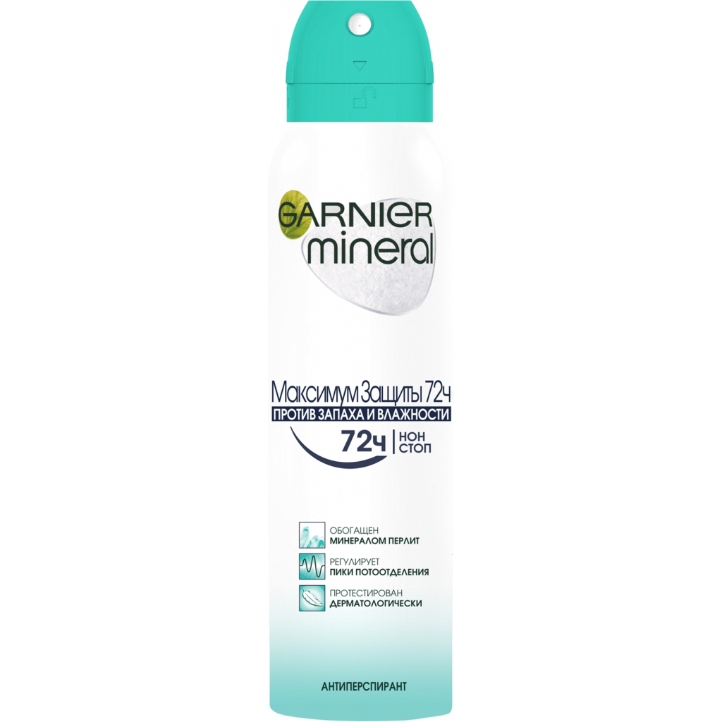 Дезодорант-антиперспірант Garnier Mineral Максимальний захист 72 години спрей із натуральним абсорбентом мінералом перліт — натуральним абсорбентом вулканічного походження. Нейтралізує піки потовиділення. Надійний захист від запаху на 72 години та вологи на 48 годин. Свіжий аромат. Не містить спирту та парабенів. Дає змогу шкірі дихати.