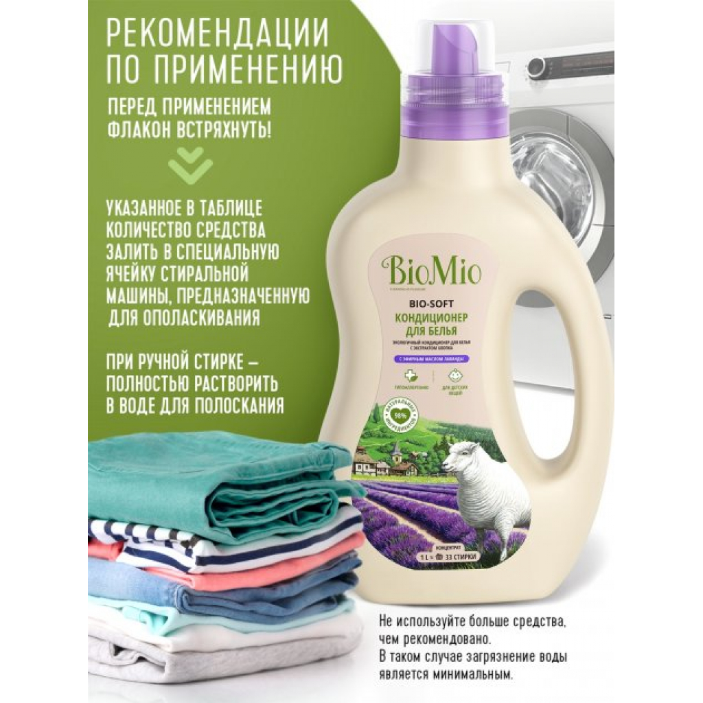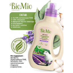 BioMio Bio-Soft — кондиціонер для білизни з екстрактом бавовни й ефірною олією лаванди.