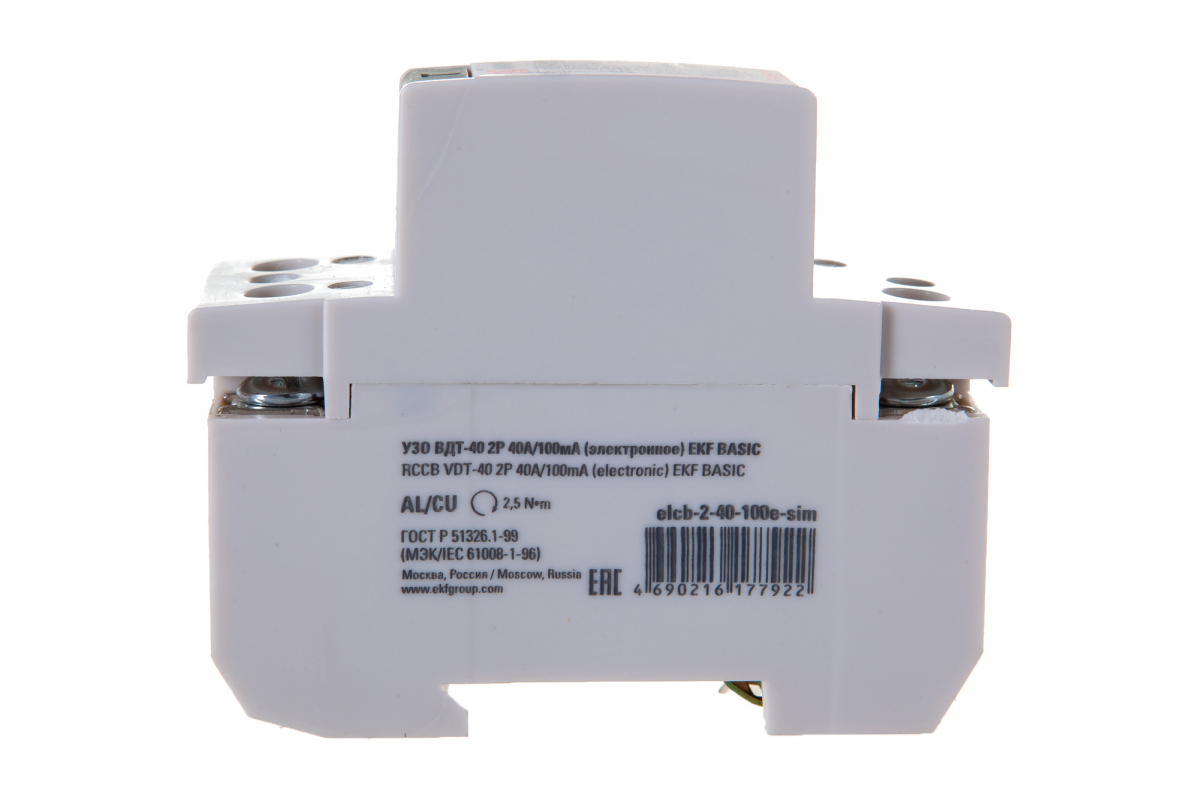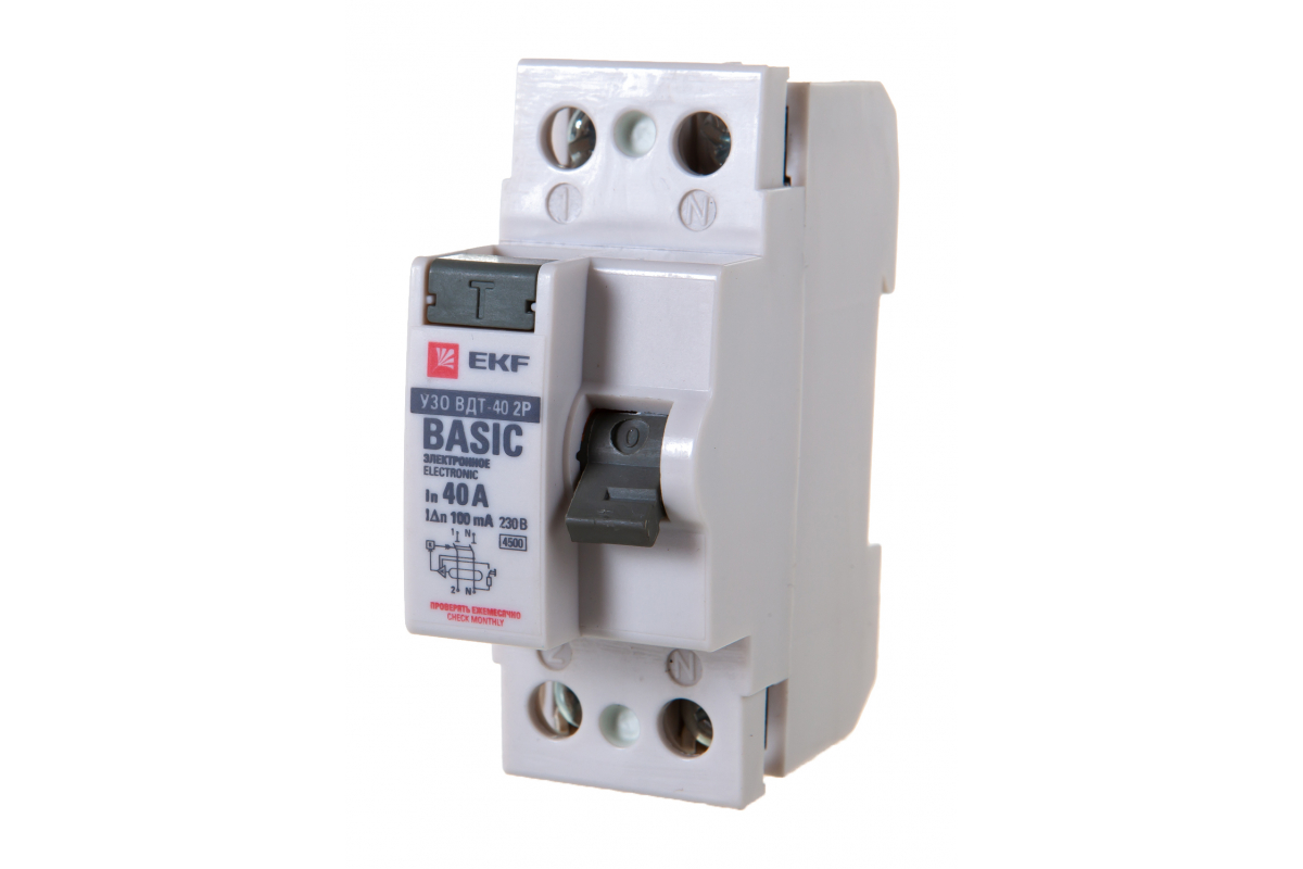 Устройство защитного отключения EKF УЗО ВДТ-40 2P 40А/100мА электронное Basic SQelcb-2-40-100e-sim