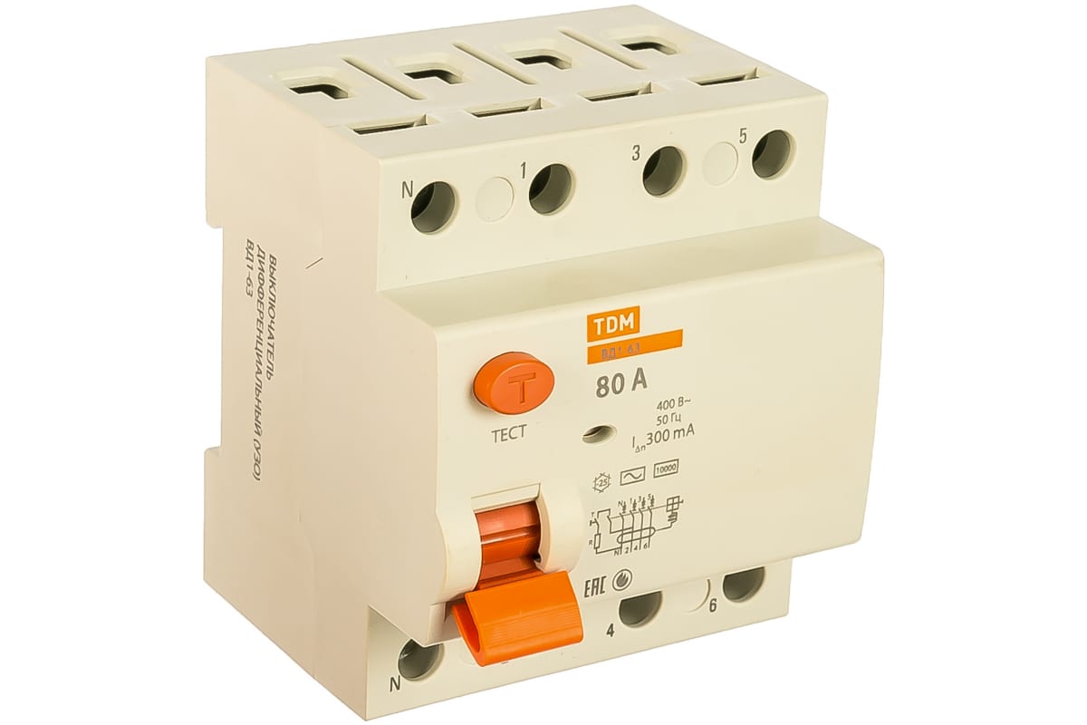 Устройство защитного отключения ВД1-63 4Р 80А 300мА TDM SQ0203-0046