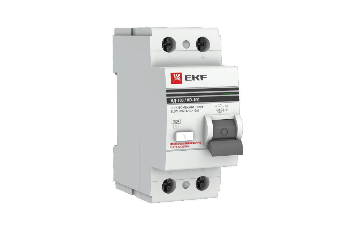 Электромеханическое устройство защитного отключения EKF ВД-100 2P 63А/30мА PROxima SQelcb-2-63-30-em-pro