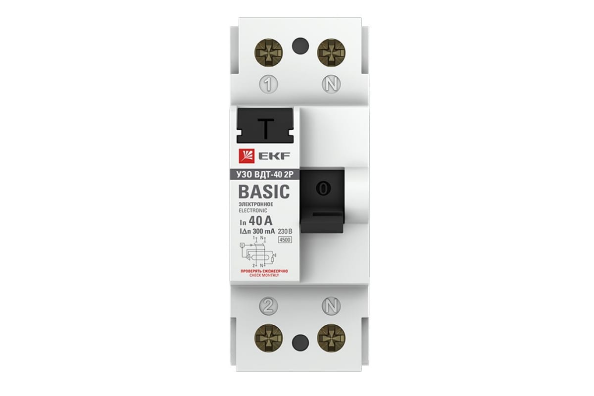 Устройство защитного отключения EKF УЗО ВДТ-40 2P 40А/300мА электронное Basic SQelcb-2-40-300e-sim
