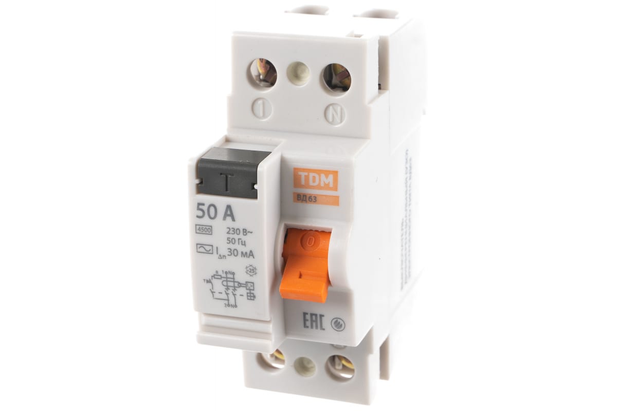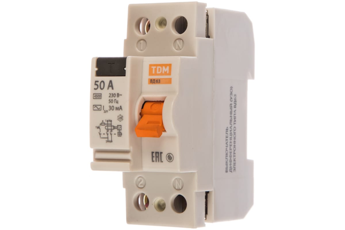 Устройство защитного отключения TDM ВД63 2Р 50А 30мА электронное SQ0220-0012 широко используется для установки в квартирах, частных домах, офисных помещениях и пр. Повышает безопасность при использовании различных электроприборов, предотвращает риск возникновения пожара при утечке тока через поврежденный слой изоляции проводов или некачественные их соединения.