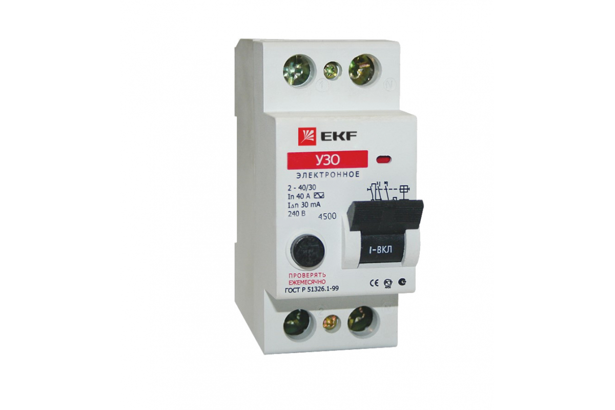 Электронное устройство защитного отключения EKF УЗО 2P 40А/30мА SQelcb-2-40-30e