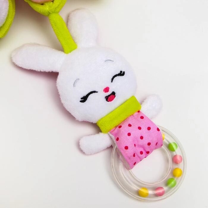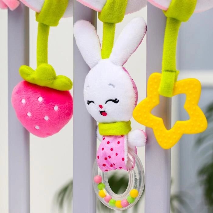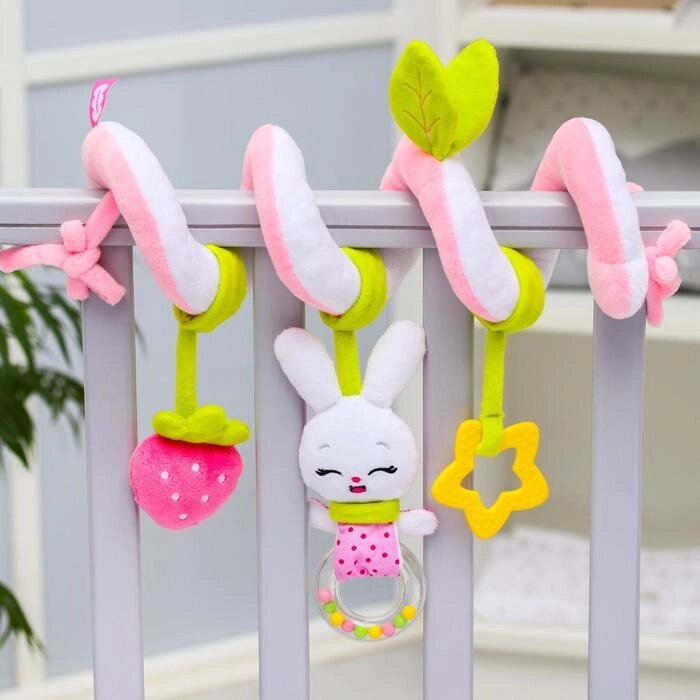 Растяжка - спираль "Зайка Банни", прорезыватель, пищалка, погремушка