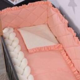 наповнювач: ковдра - силіконізоване волокно, подушка та подушки захисту - синтепон, бампер-коса - холлофайбер.