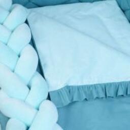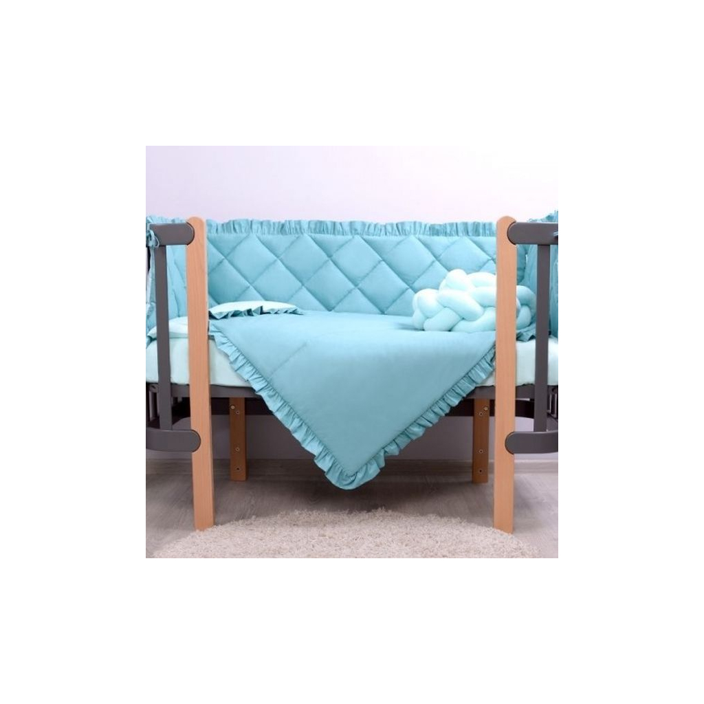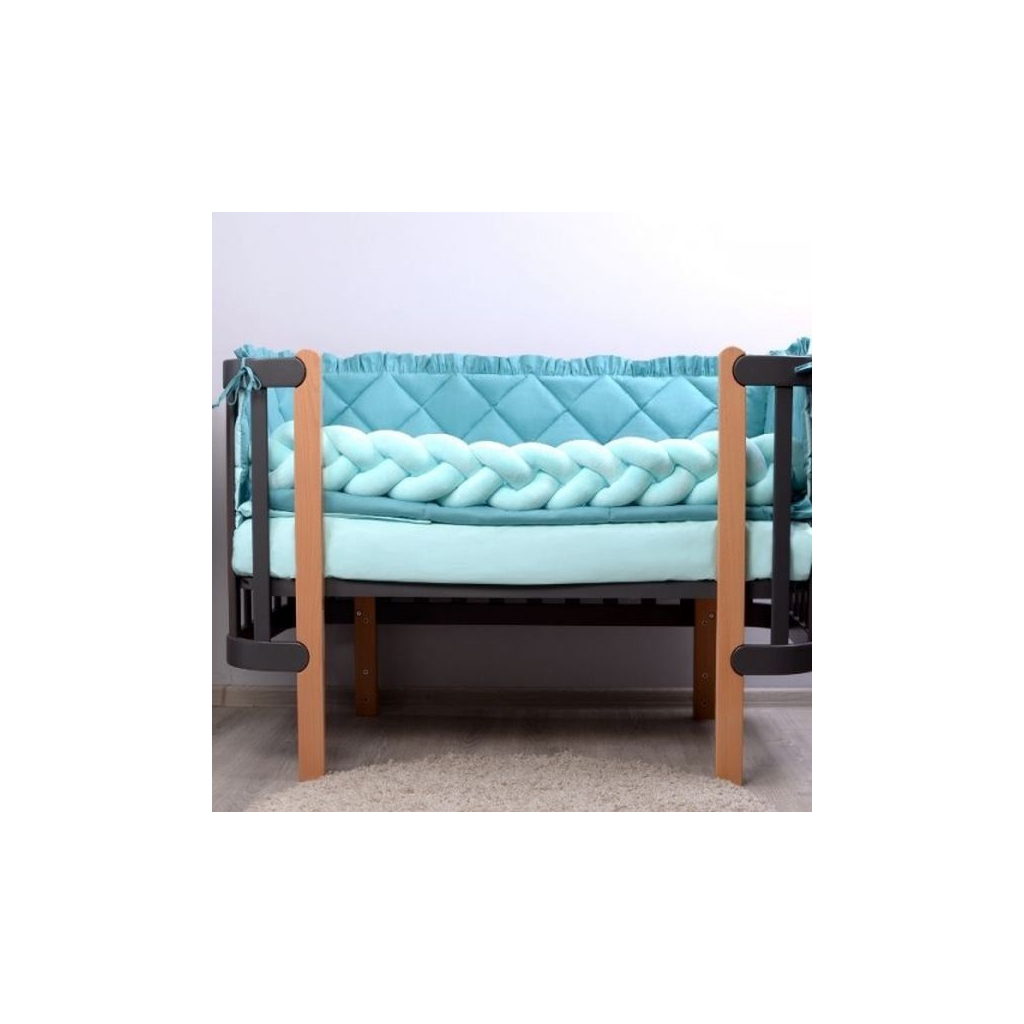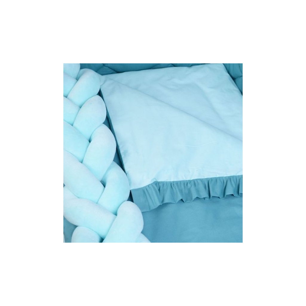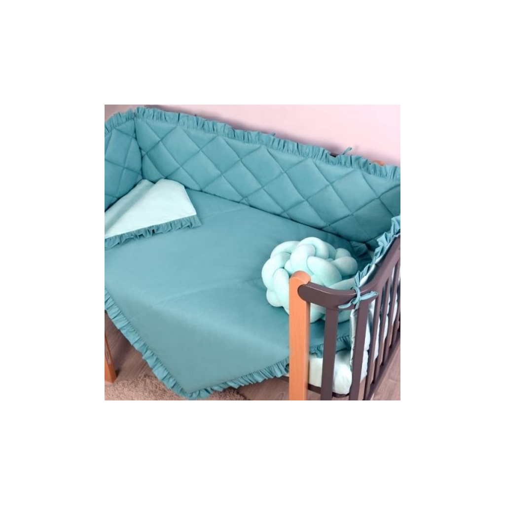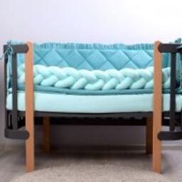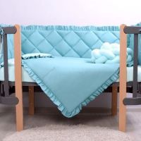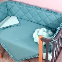 Наповнювач: ковдра - силіконізоване волокно, подушка та подушки захисту - синтепон, бампер-коса - холлофайбер.