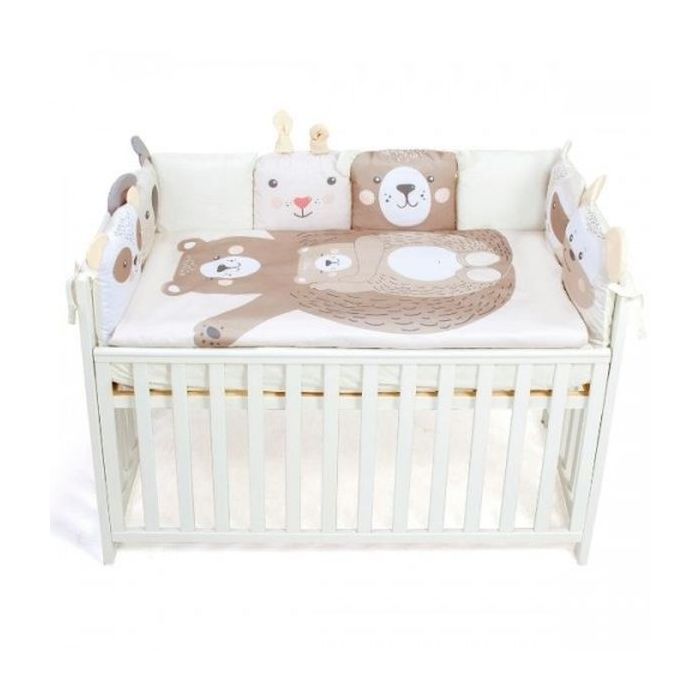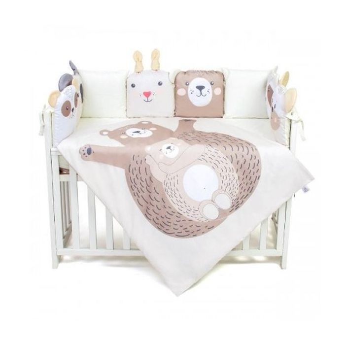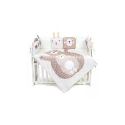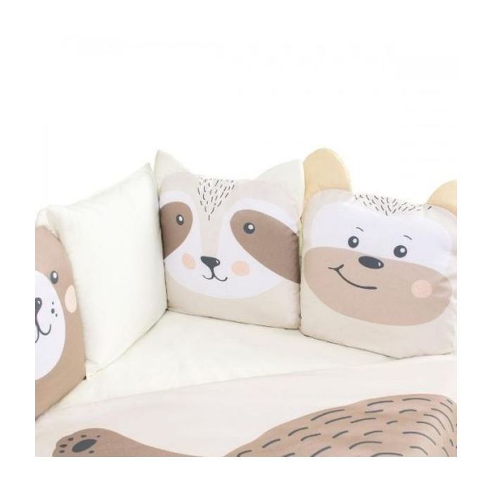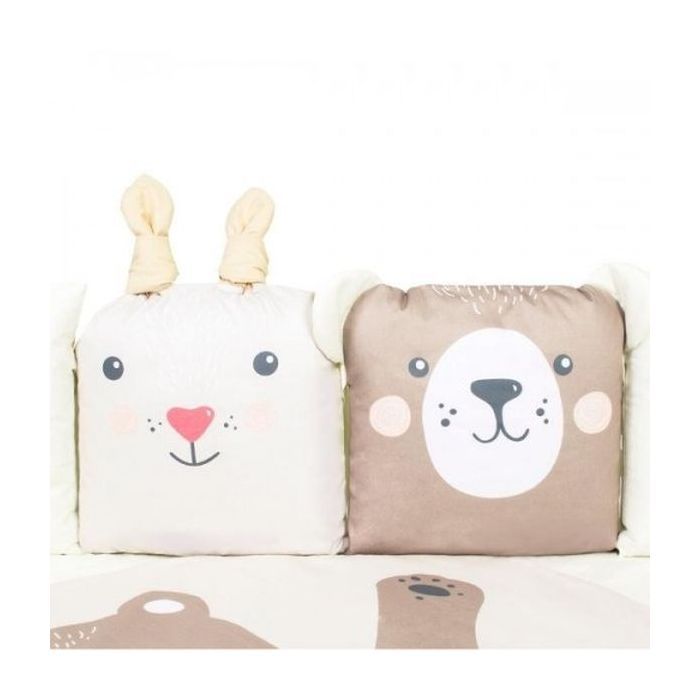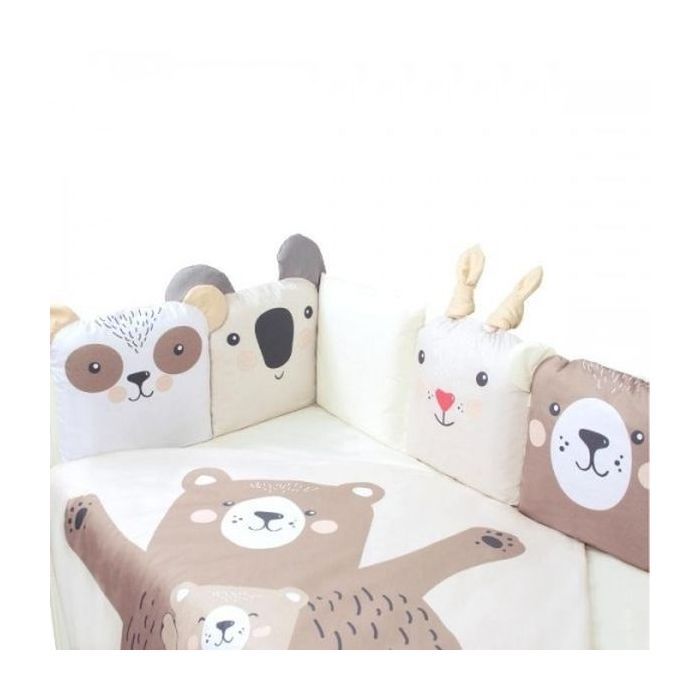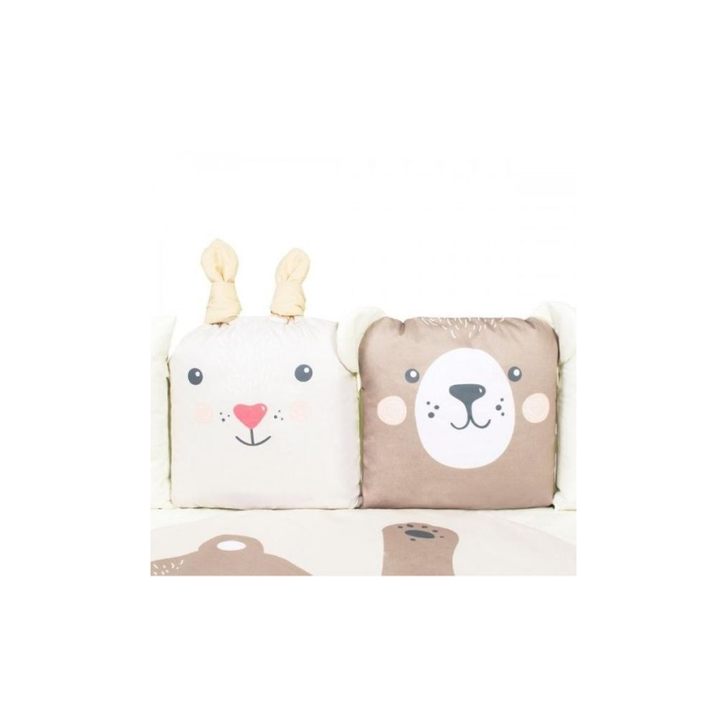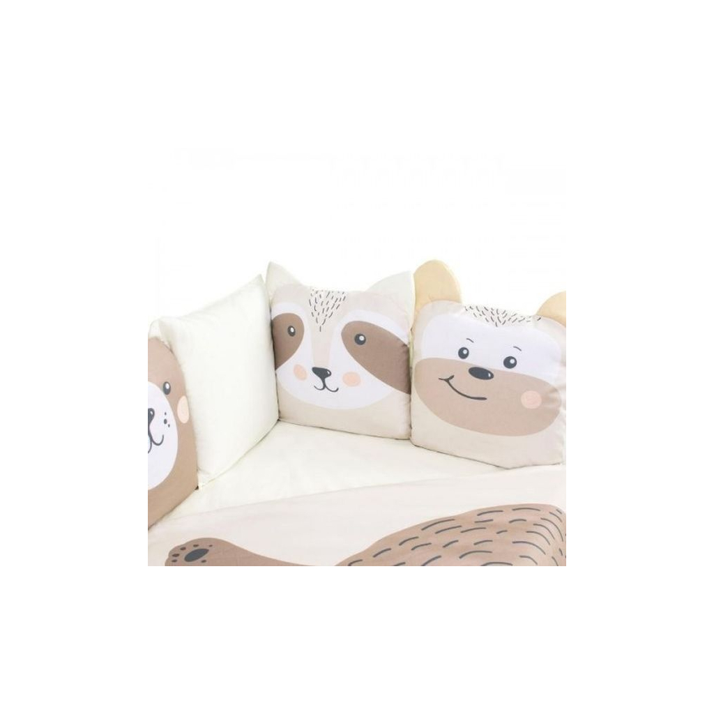 Zoo beige - постільний комплект з колекції Cuties. 6 з 8 подушечок захисту виконані у вигляді мордочок тваринок з об`ємними вушками.
