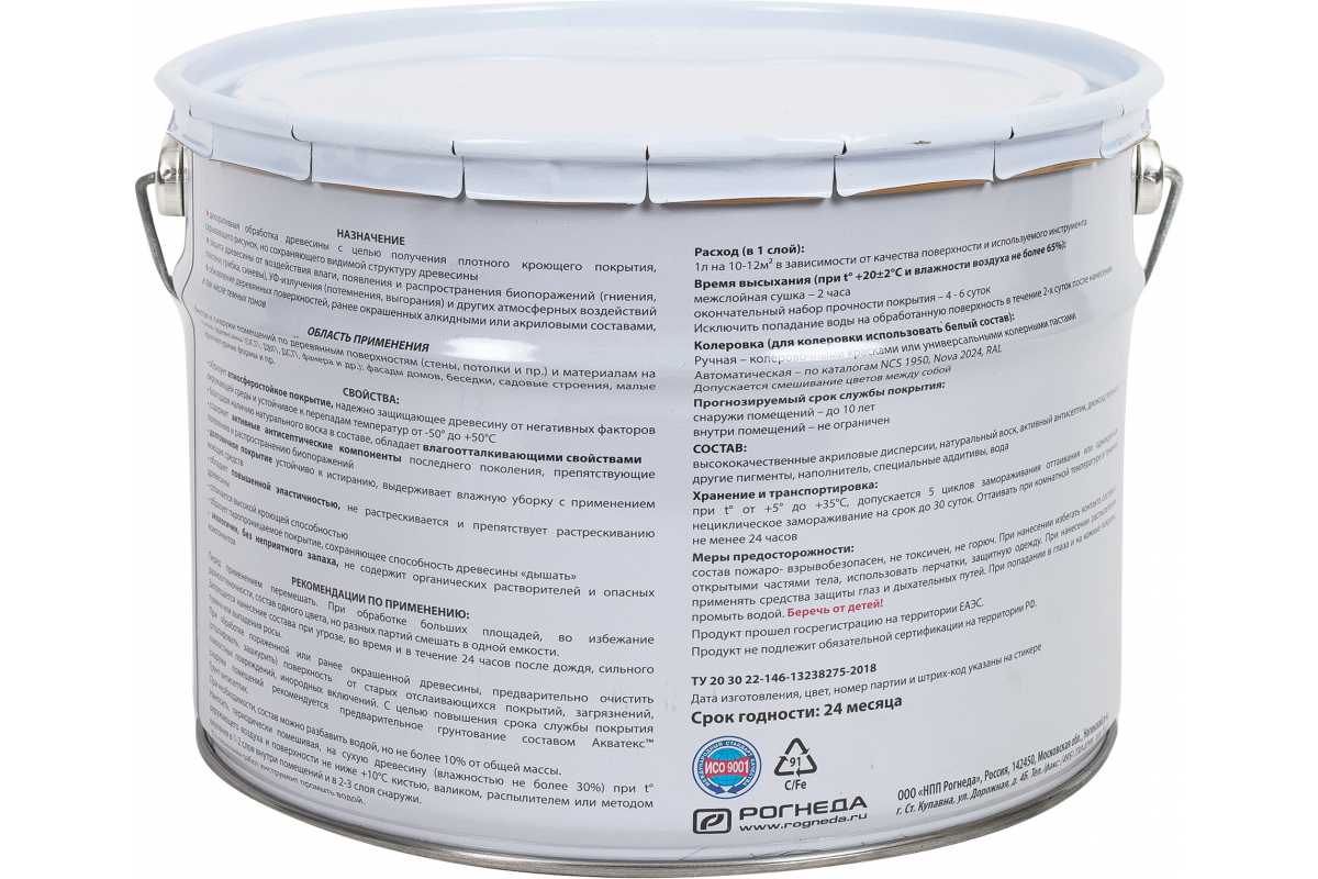 - Состав высококачественные акриловые дисперсии, натуральный воск, активный антисептик, диоксид титана, пигменты, наполнитель, специальные аддитивы, вода