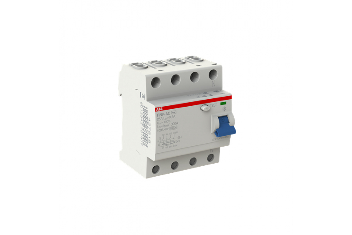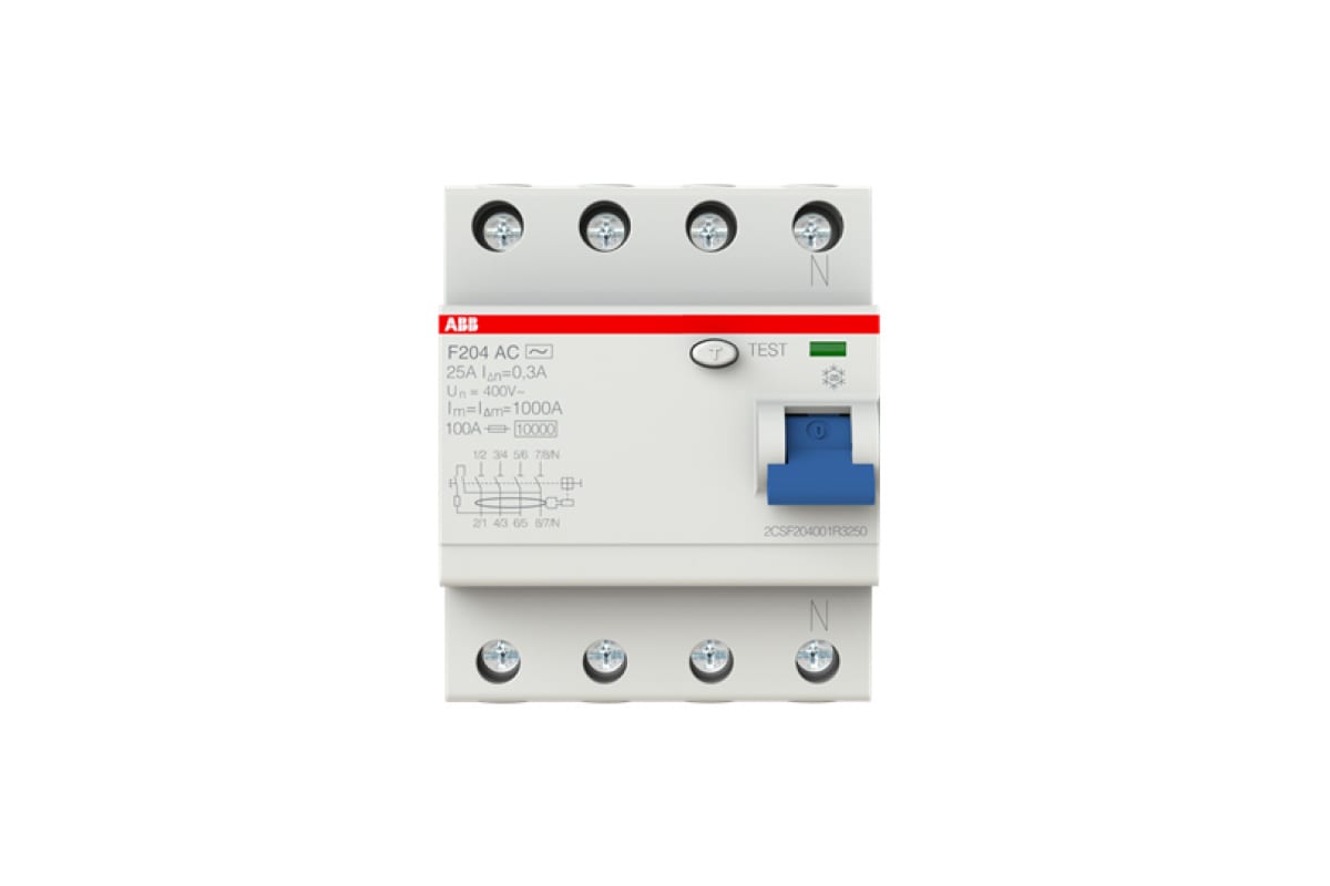Выключатель дифференциального тока ABB УЗО, 4п, 25А, 300мА, F204, АС 2CSF204001R3250