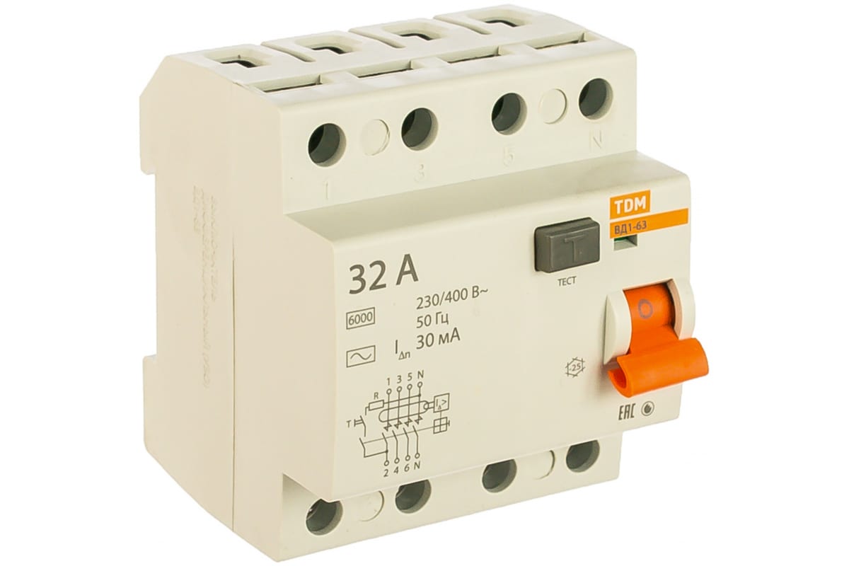 Устройство защитного отключения ВД1-63 4Р 32А 30мА TDM SQ0203-0035 - УЗО для проведения тока в цепи в нормальном режиме и защиты от его утечки на землю. Также аппарат предотвращает риск удара током при соприкосновении человека с токоведущими частями на различных электроустановках. Изделие легко поддается установке, которая не составит труда даже элеткромонтажнику-любителю.
