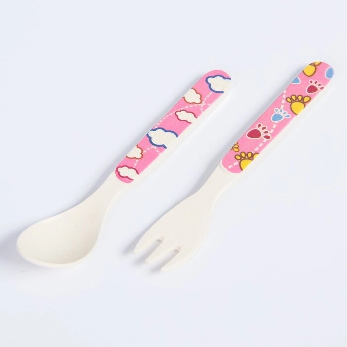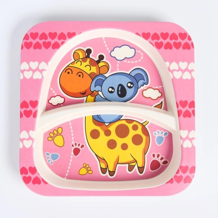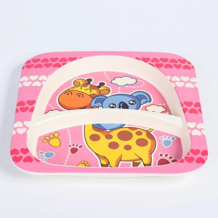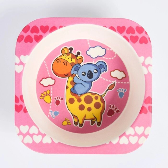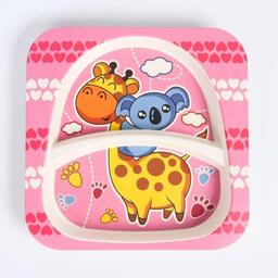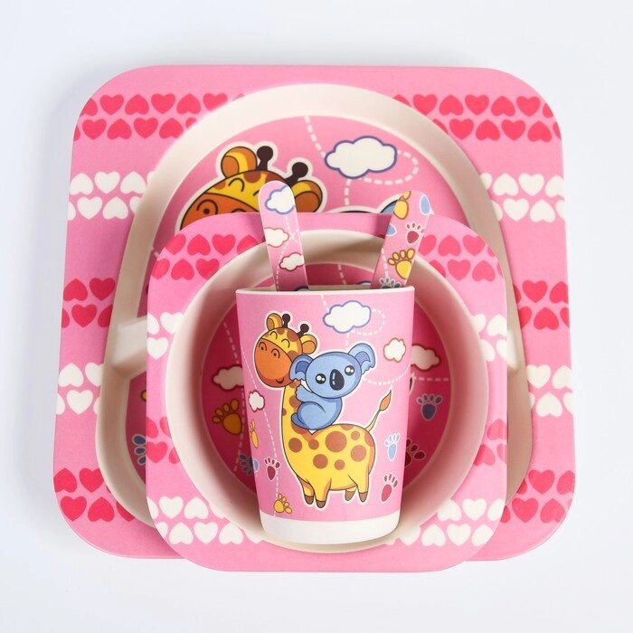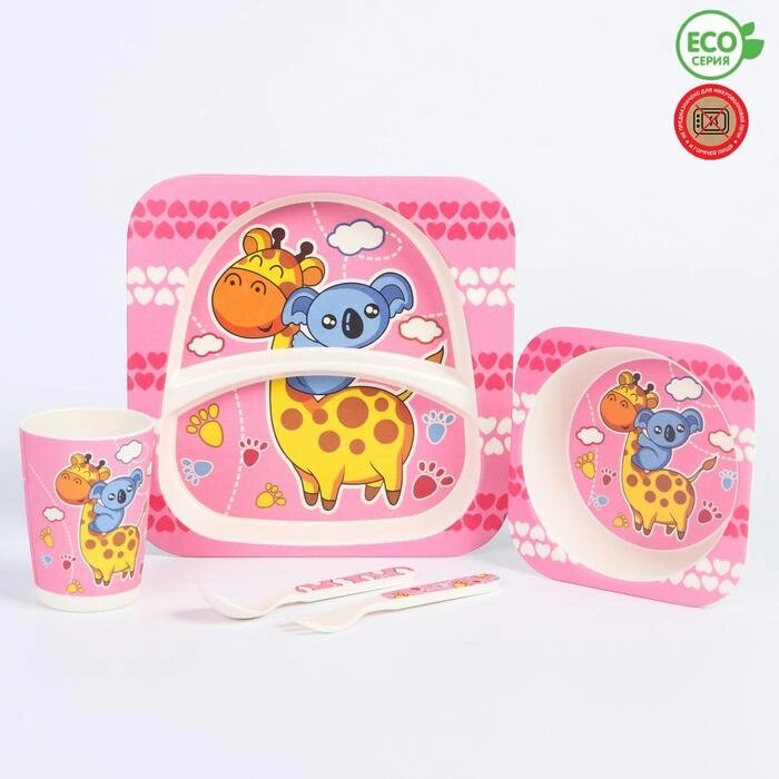 Набор детской бамбуковой посуды 'Жираф и коала'тарелка, миска, стакан, приборы, 5 предметов