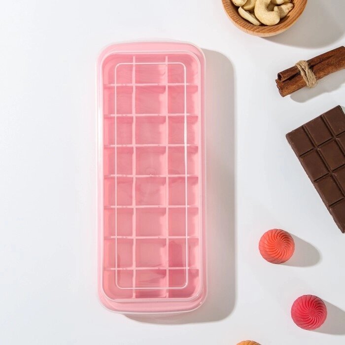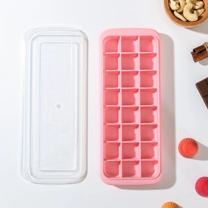 Форма для льда с крышкой, 24 ячейки, 25x9,5x3 см, цвет МИКС