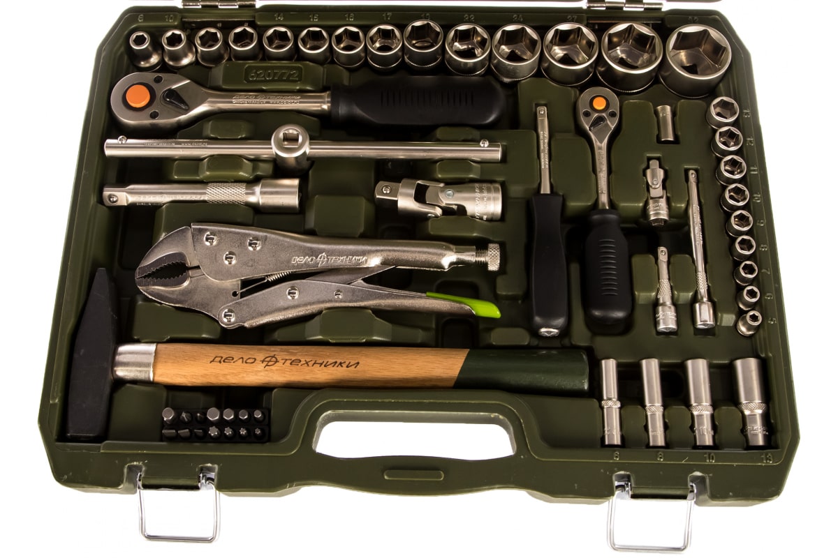 Набор инструмента 1/2, 1/4 72 предмета ДТ/4 Дело Техники 620772 применяется для обслуживания автомобиля, также пригодится на строительно-ремонтной площадке. Рабочие части изготовлены из хромванадиевой стали, которая обладает повышенной износостойкостью и долгим сроком службы. Для компактного хранения и переноски инструменты размещены в кейсе.