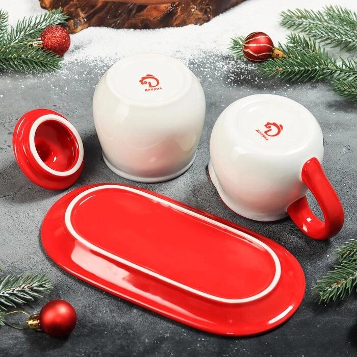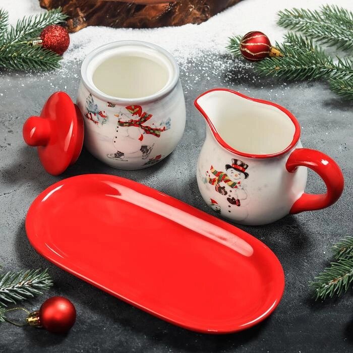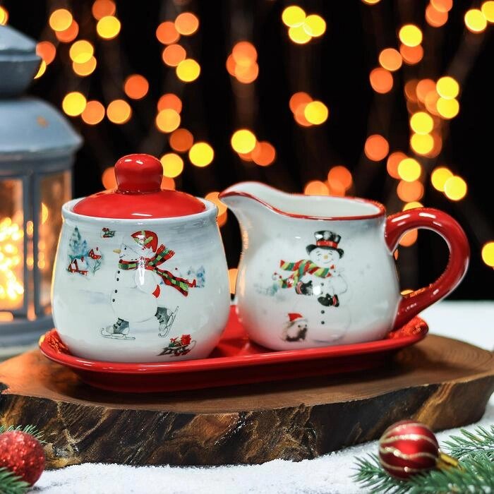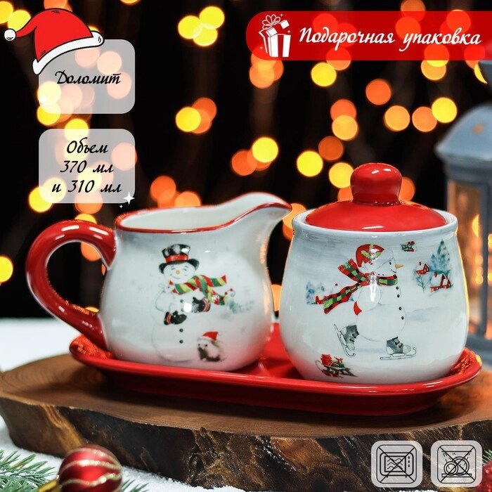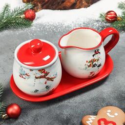 Набор сервировочный Доляна «Снеговик со зверятами», 2 шт, молочник 270 мл, сахарница 310 мл, 9,410,6 см