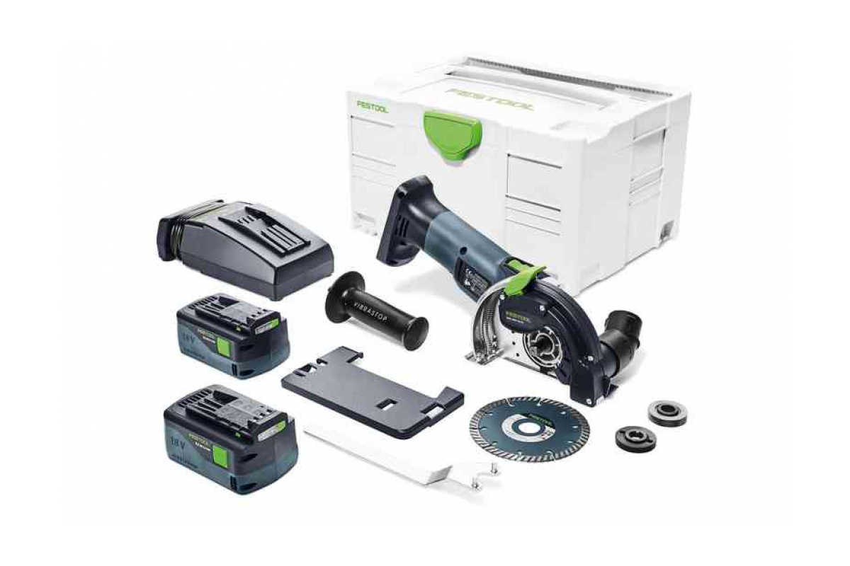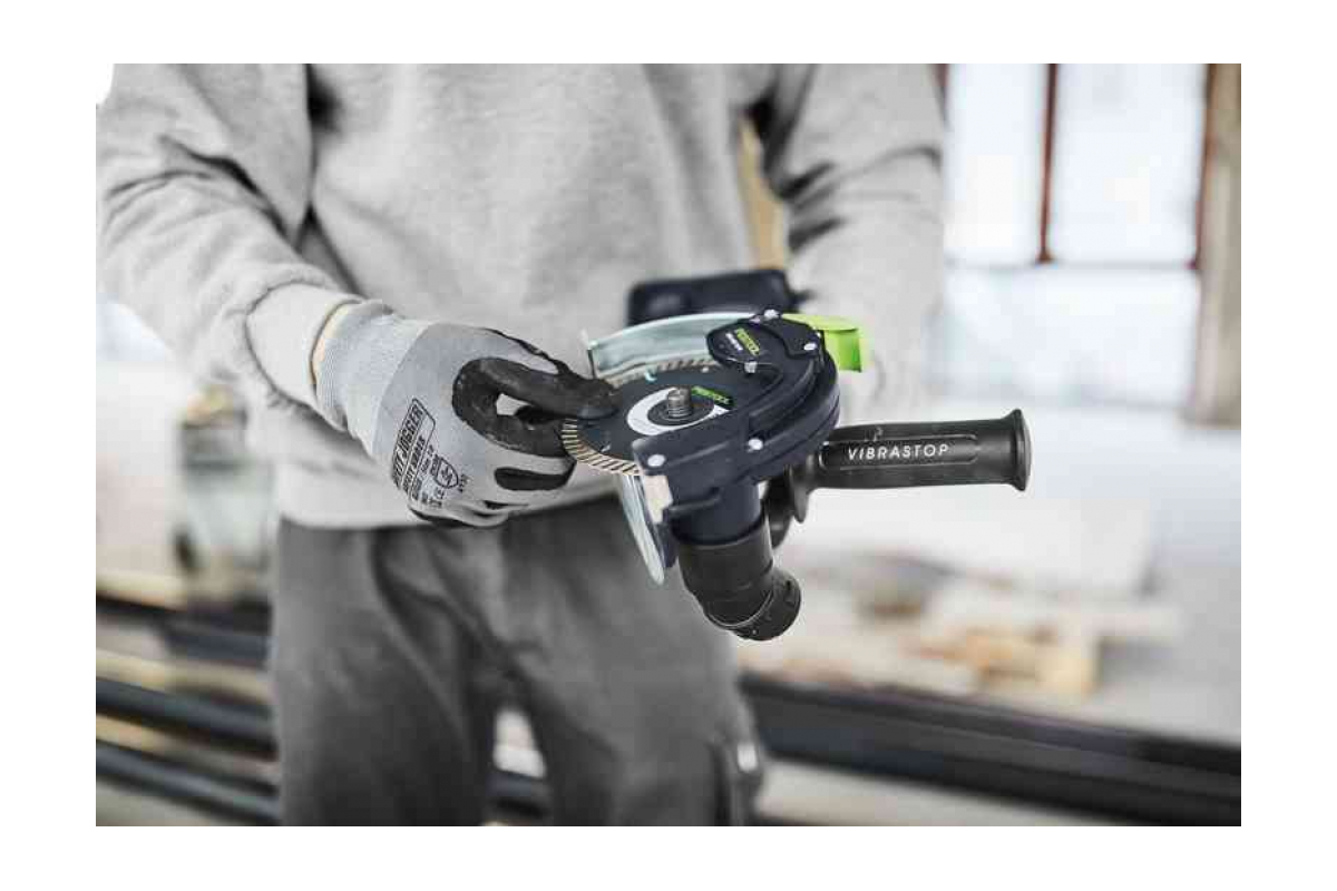 Аккумуляторная углошлифовальная машинка FESTOOL DSC-AGC 18-125 FH Li 5,2 EBI-Plus 575346 предназначена для абразивной резки бетона и камня.