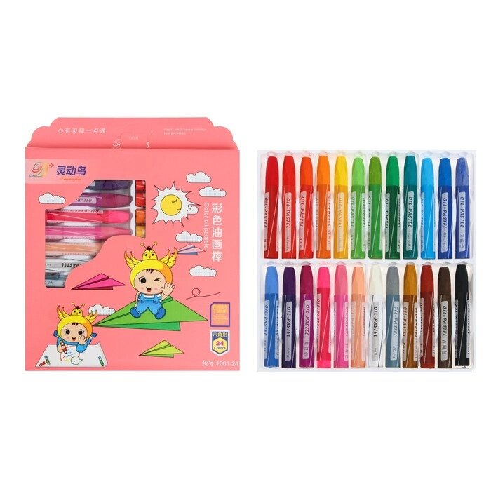 Пастель масляная, 24 цвета, в бумажном держателе, в картонной коробке