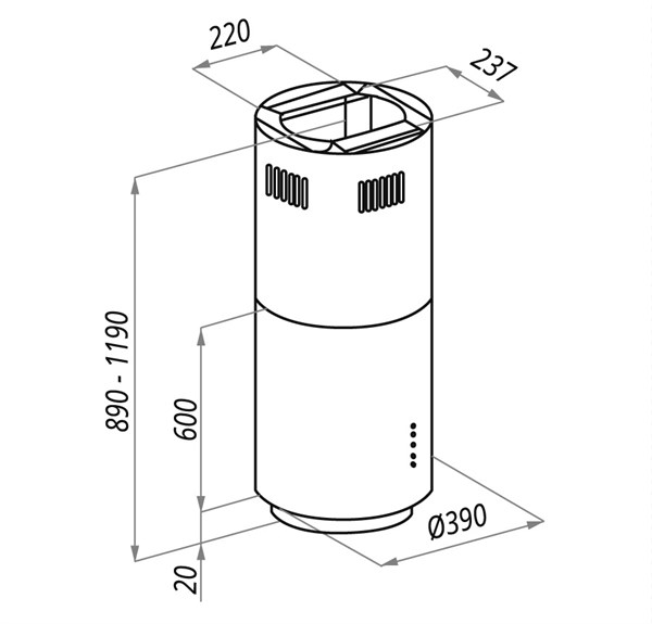Режимы работы отвод / циркуляция / Количество скоростей 4 / Управление электронное, кнопочное /