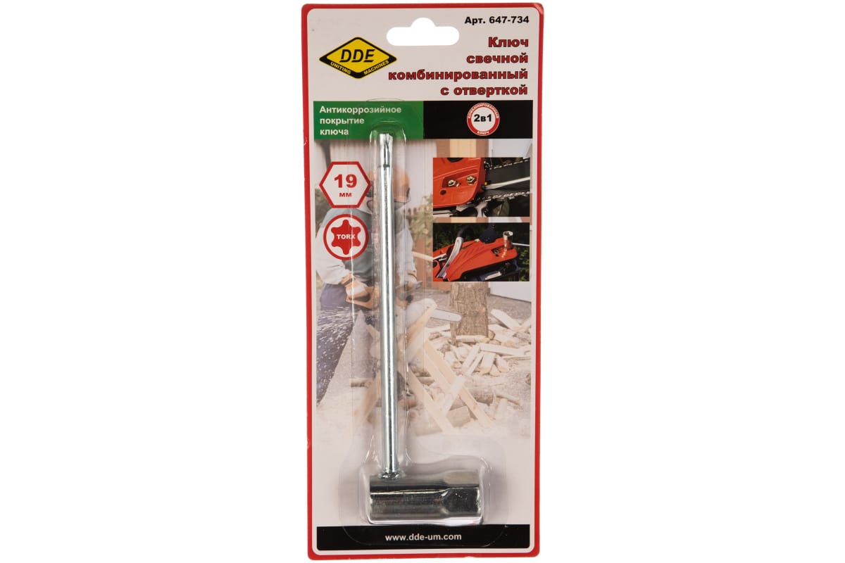 Ключ свечной комбинированный 19 мм,TORX 27 Stihl DDE 647-734 необходим при работе с бензоинструментом - пилами, триммерами и другими устройствами. Позволяет без труда сменить свечи зажигания, пильную цепь, затянуть гайки и винты.