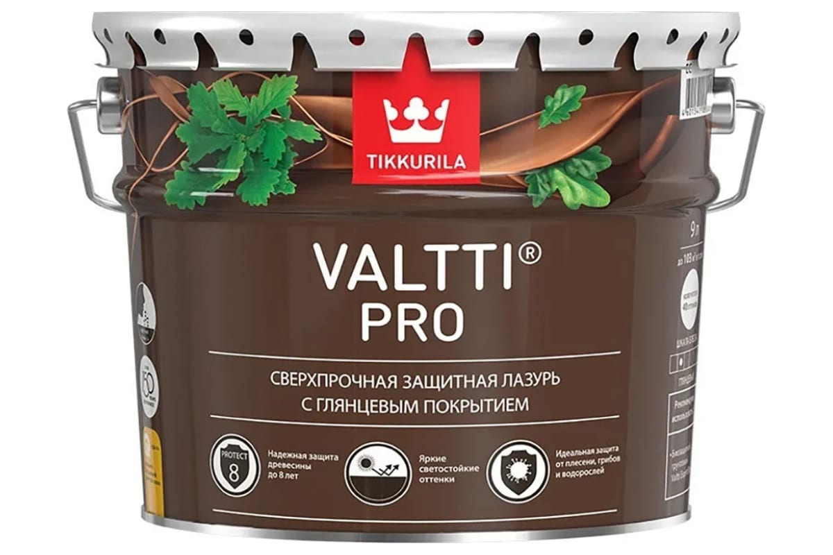 Антисептик для дерева TIKKURILA Валтти Pro палисандр, 9 л 52789 - пленочно-лессирующая лазурь для защиты и отделки деревянных поверхностей снаружи помещений.
