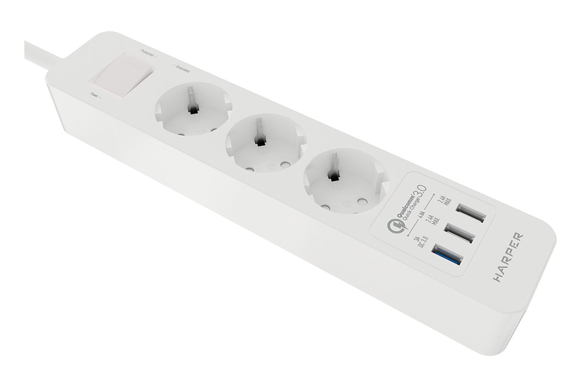 Удлинитель с USB зарядкой HARPER UCH-340 White QC3.0 H00002821