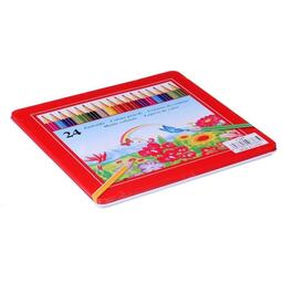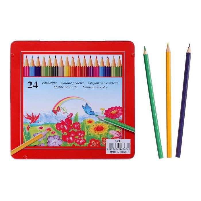 Карандаши 24 цвета, в металлическом пенале, заточенные