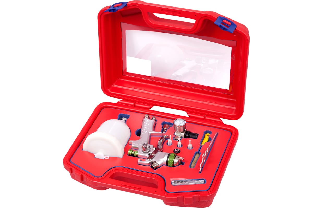 Краскопульт МАСТАК 671-013C - это исключительно простое в эксплуатации приспособление, которое позволяет быстро и качественно осуществить окрашивание любой требуемой поверхности. Работает совместно с воздухонагнетательным оборудованием низкого давления. Данная модель популярна в авто-слесарных мастерских.
