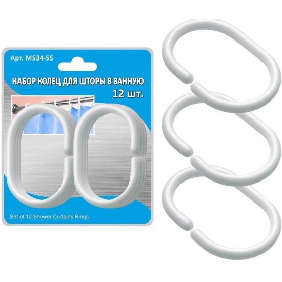 Набор колец для шторы в ванную МУЛЬТИДОМ белые, 12 штук MS34-55