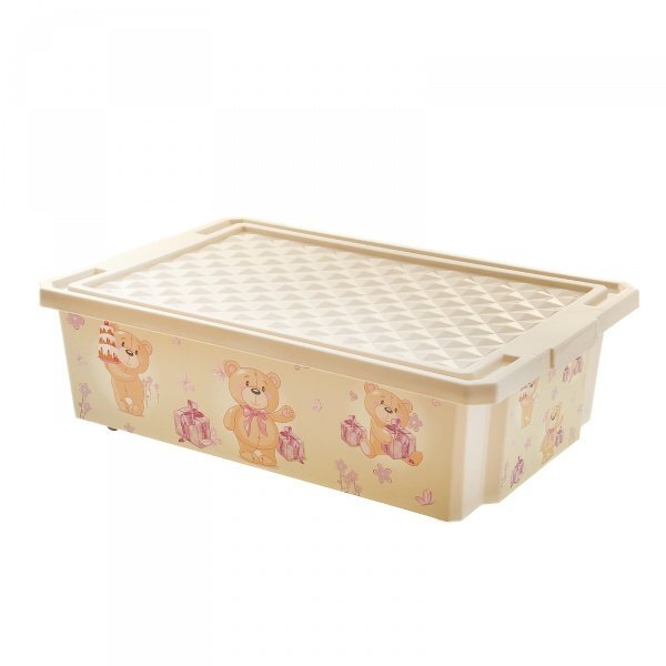 Ящик для игрушек 30л X-BOX BEARS на колесах слоновая кость Little Angel (1/8)