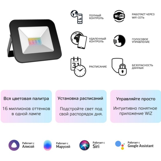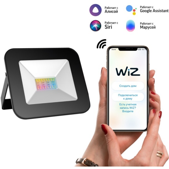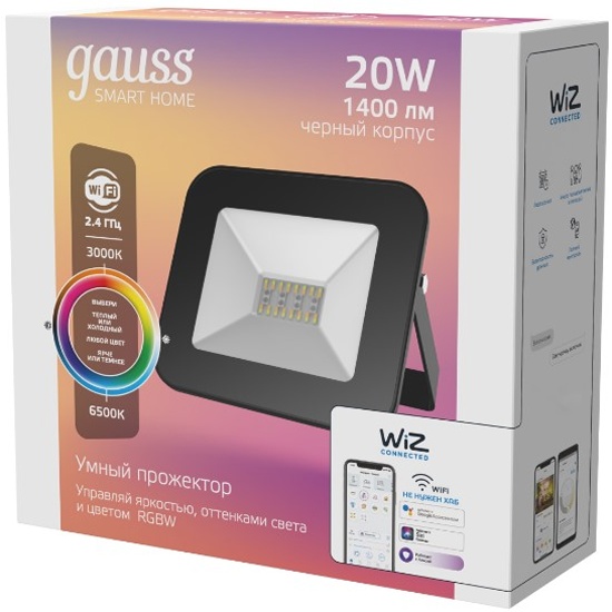 Умный Wi-fi прожектор Gauss Smart Light RGBW 20 Вт 1400 лм 3000-6500K, с изменением цвета, управление голосом/смартфоном.
