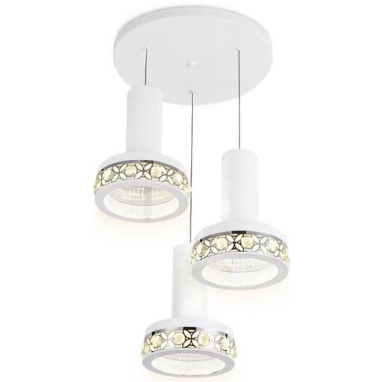 Подвесной светодиодный светильник из коллекции ACRYLICA Ice. Великолепная модель FA9492 выполнена в современном стиле Неоклассика. Бесподобный хрустальный декор придает особый шик светильникам этой коллекции. Эта модель состоит из трех плафонов, круглой формы, металлический корпус белого цвета. Благодаря встроенным в конструкцию светодиодам, вы можете с уверенностью забыть о поиске или замене дополнительных ламп. Эта модель подходит для натяжных потолков и будет прекрасным дополнением в гостиной, спальне или детской комнате.