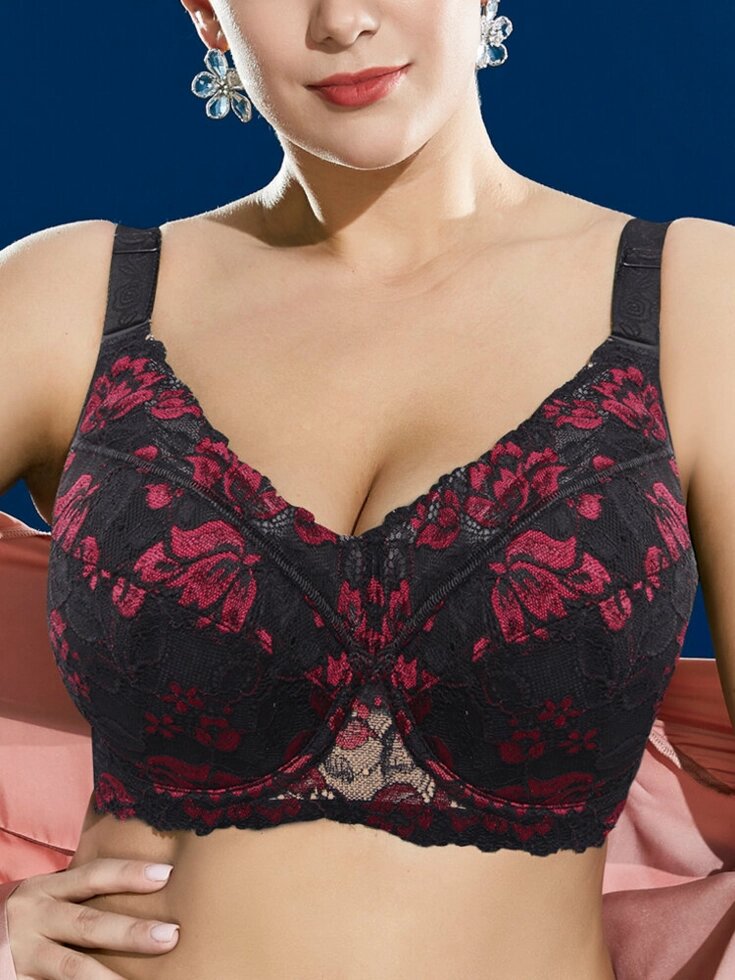Плюс Размер Push Up Вышивка Тонкие Полное Покрытие Хлопок Linning Собери Бюстгальтеры