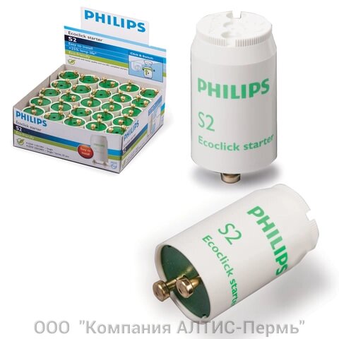 Стартеры для люминесцентных ламп PHILIPS S2, комплект 25 шт., 4-22 W, 220-240 V (двухламповая. схема подключения)