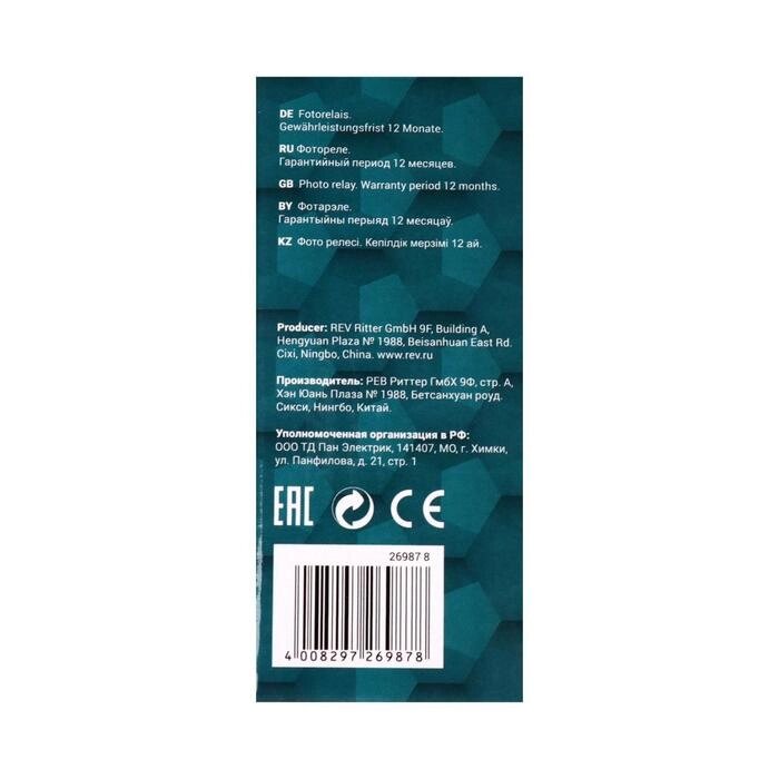 Фотореле REV, FR-016А, 6 А, 1200 Вт, 220 В, 360°IP44