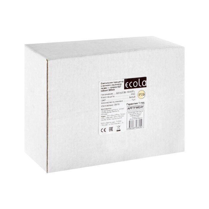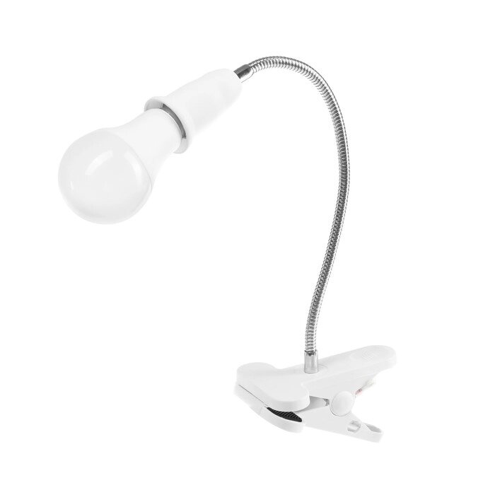 Светильник на прищепке Ecola base, Е27, 220В, выключатель, вилка, гибкий, 300 мм, белый